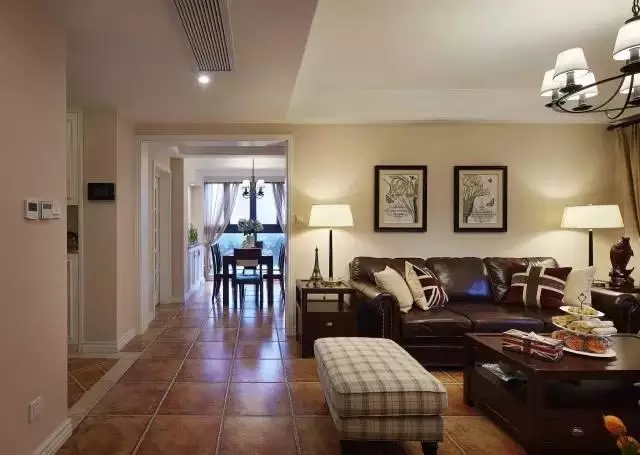 本案定位為美式鄉(xiāng)村,走簡(jiǎn)約路線,家具部分以彩色色系,點(diǎn)綴部分黑色,演繹復(fù)古的同時(shí)又具雅致。家具的造型上采用鄉(xiāng)村簡(jiǎn)約家具,餐廳方餐桌,客廳的純牛皮沙發(fā),復(fù)古的做舊漆。