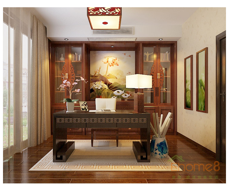中式紅木裝修書房效果圖