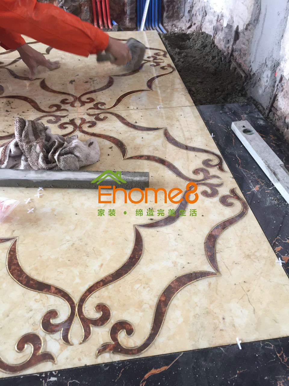 鋪磚進行中