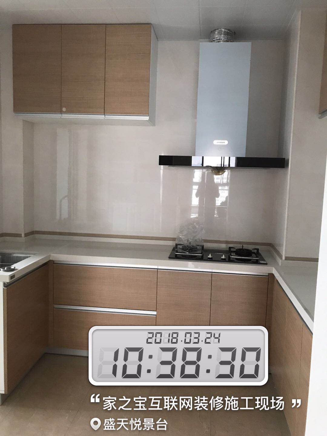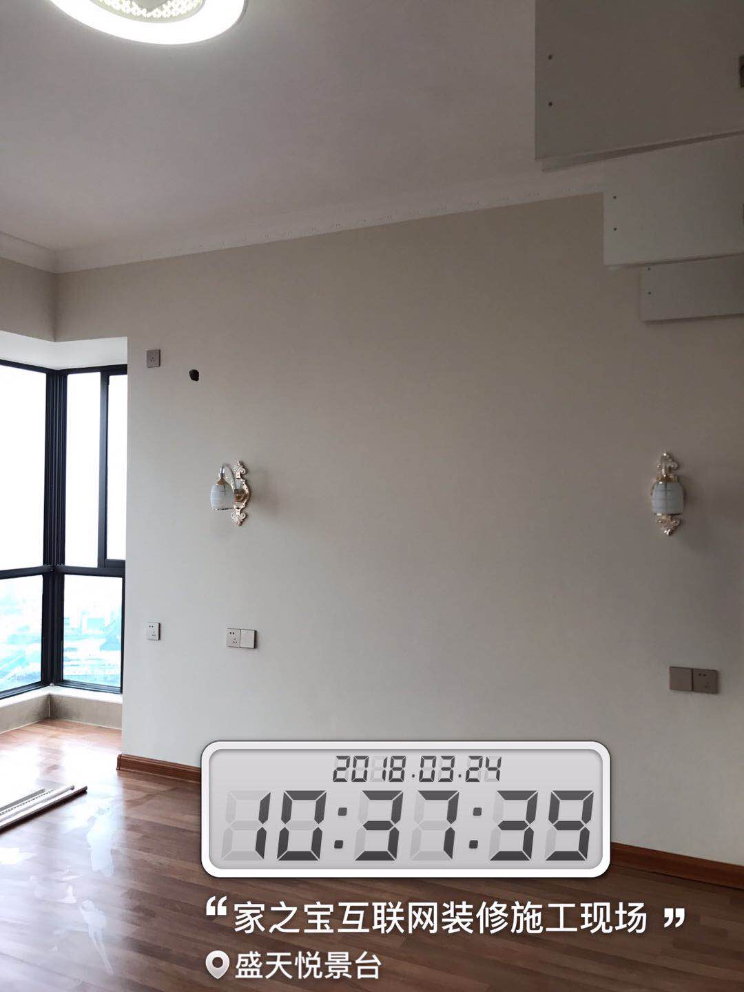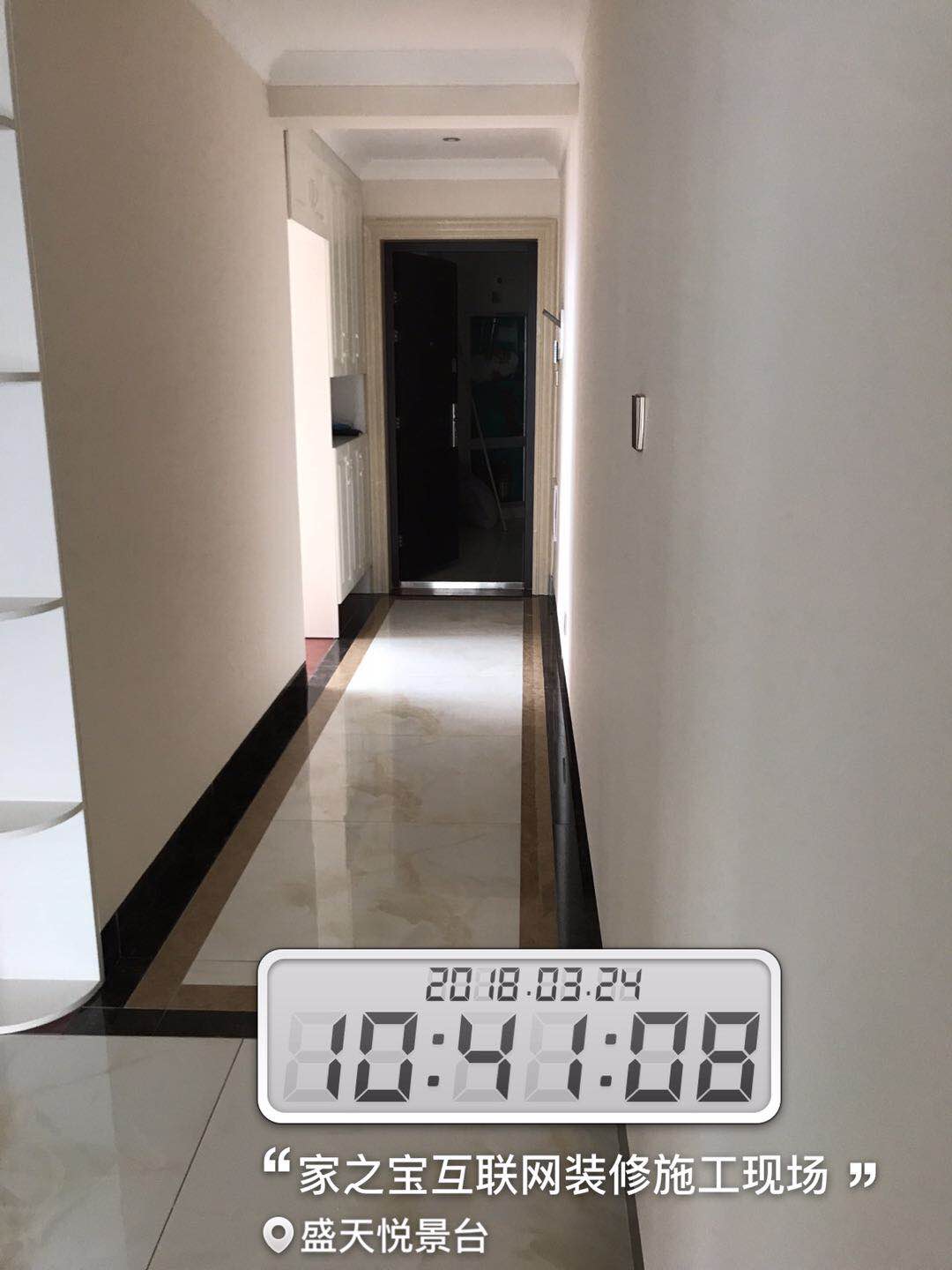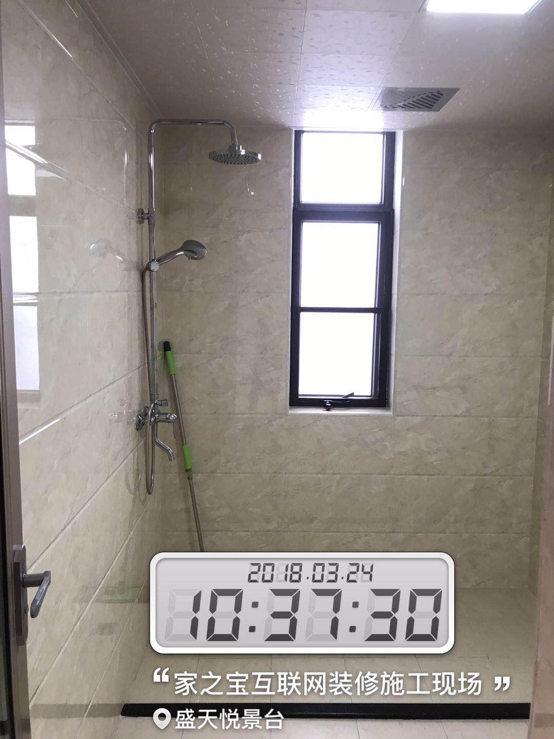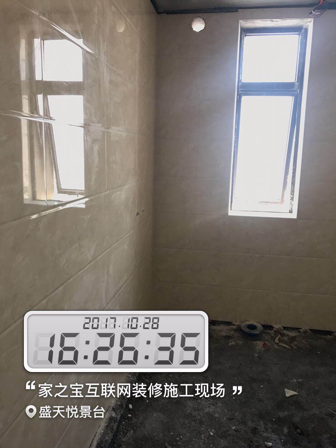 墻磚鋪貼,使用水平儀投射水平線,陽(yáng)角處采用磨邊45°碰角工藝。