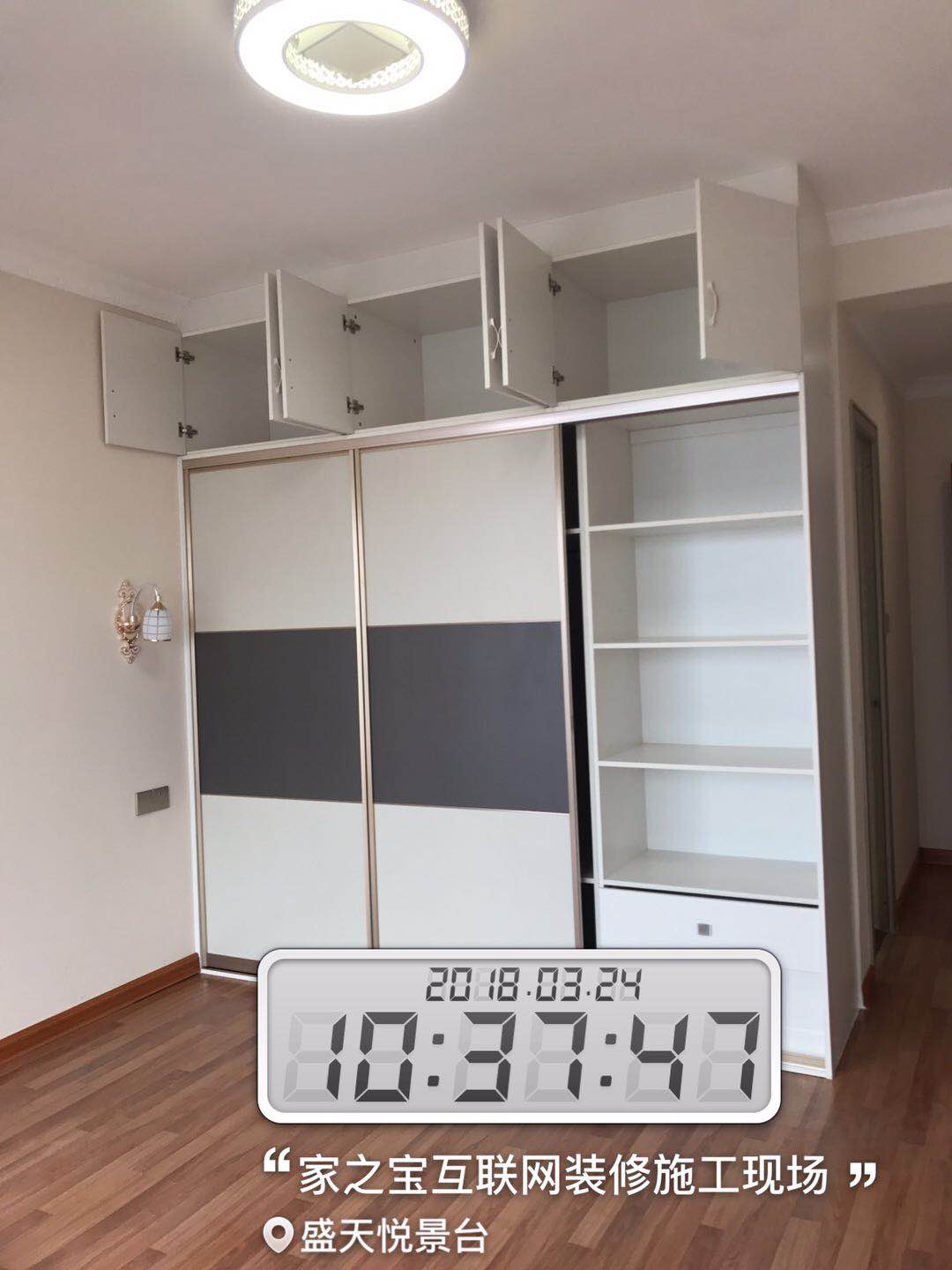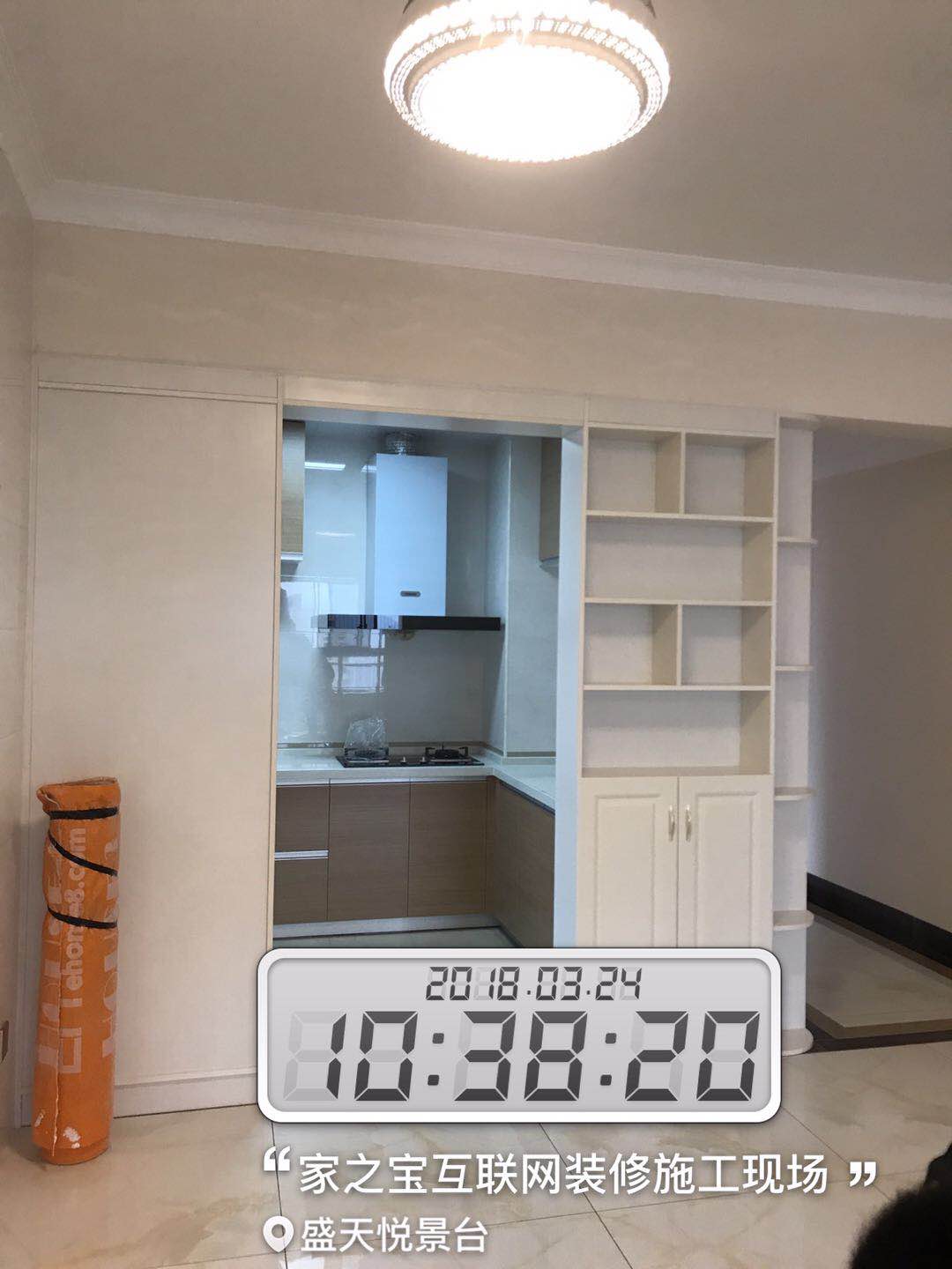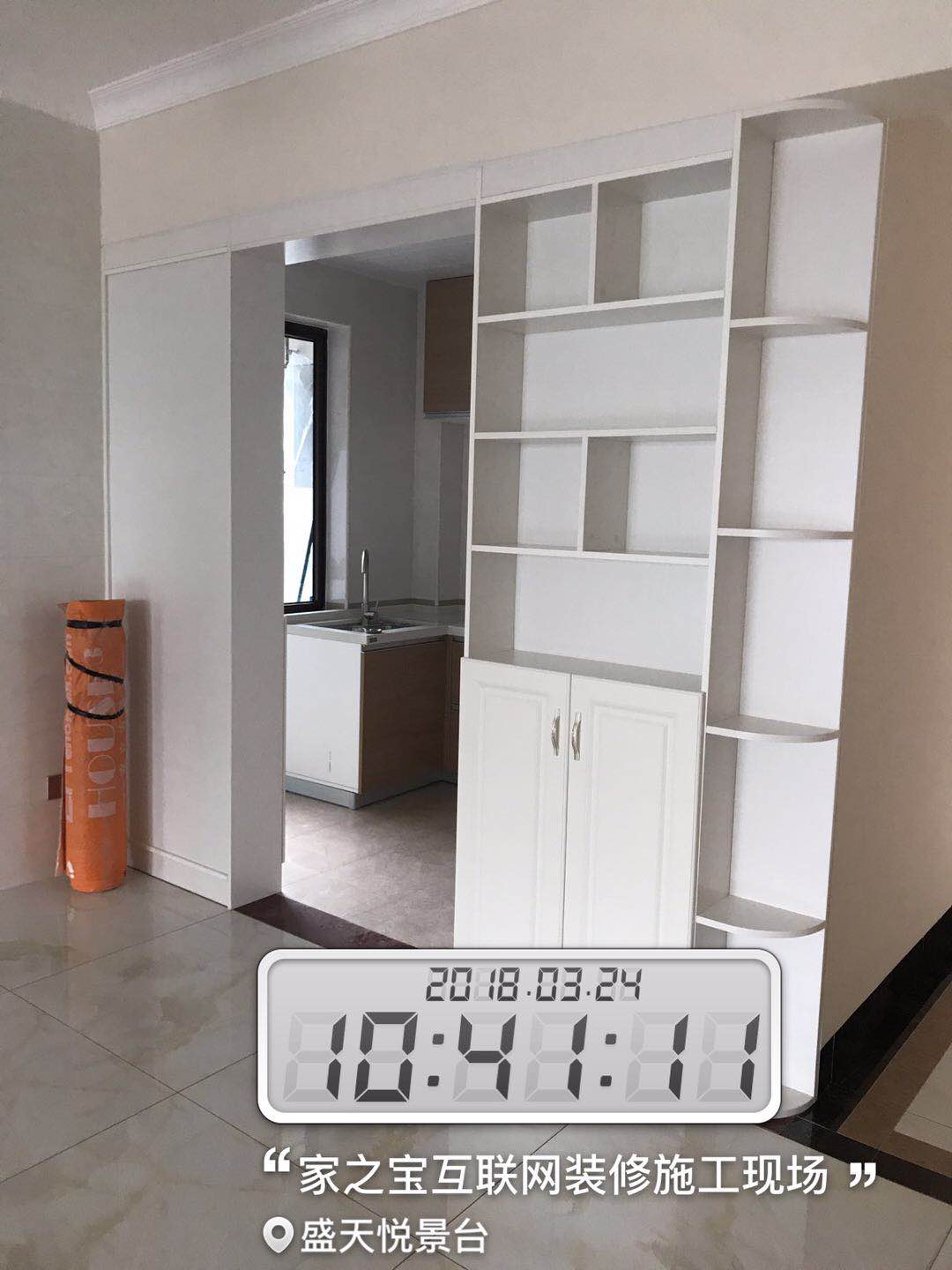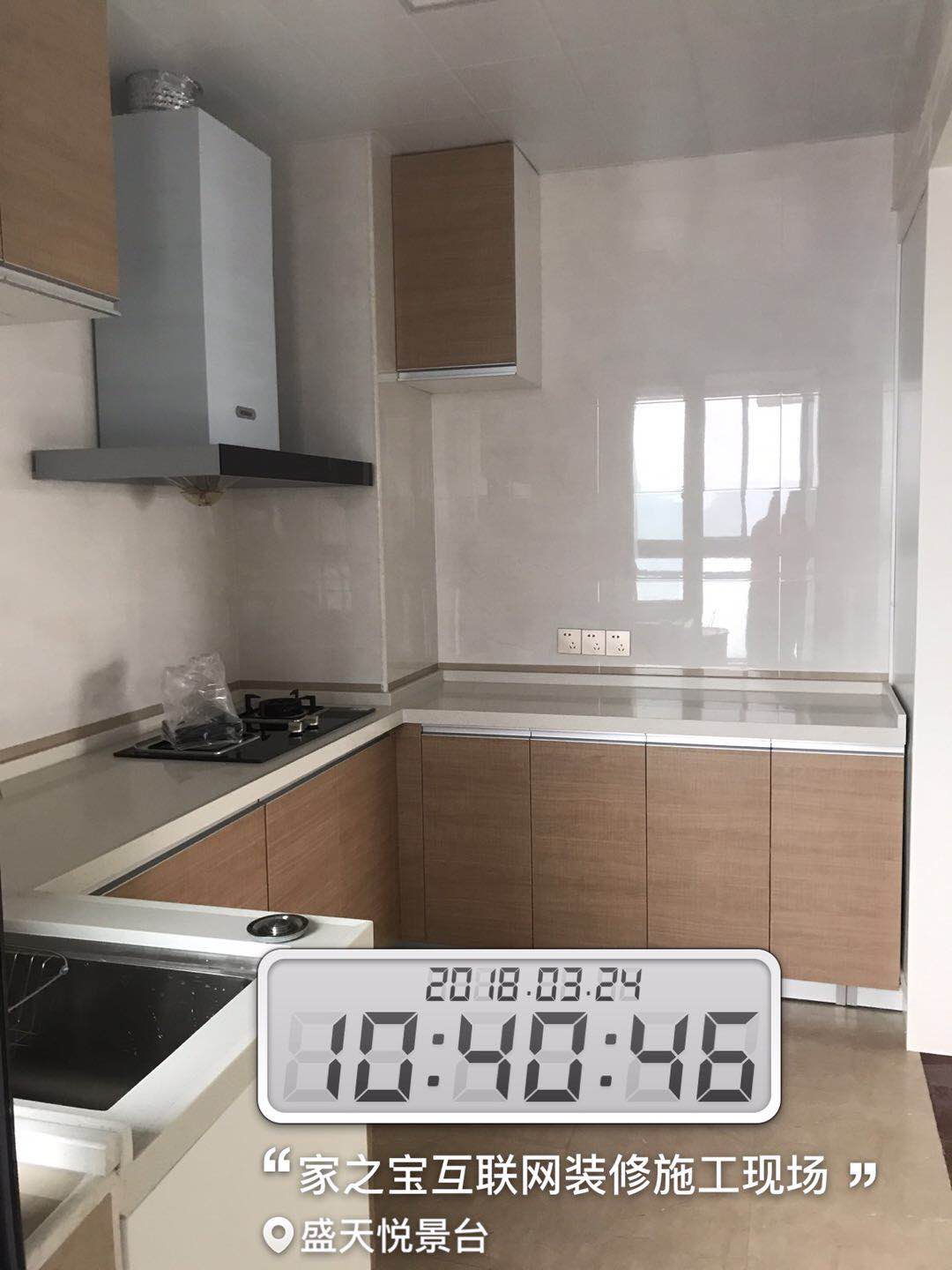 墻磚鋪貼,使用水平儀投射水平線,陽(yáng)角處采用磨邊45°碰角工藝。