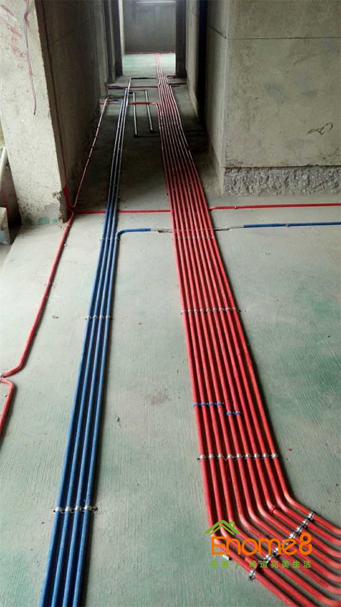 單管單槽,按國(guó)標(biāo)工藝走線管水管,橫平豎直,八字拐角,采用德系歐標(biāo)的水電材料
