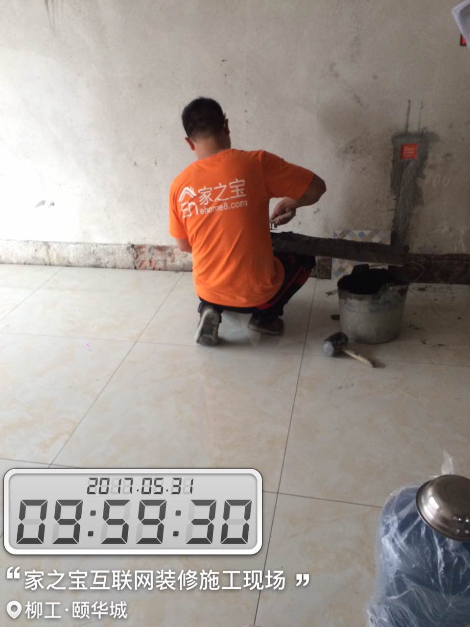 瓦工施工,平整對(duì)縫,鋪貼完畢即刻進(jìn)行成品保護(hù),鋪好地膜。