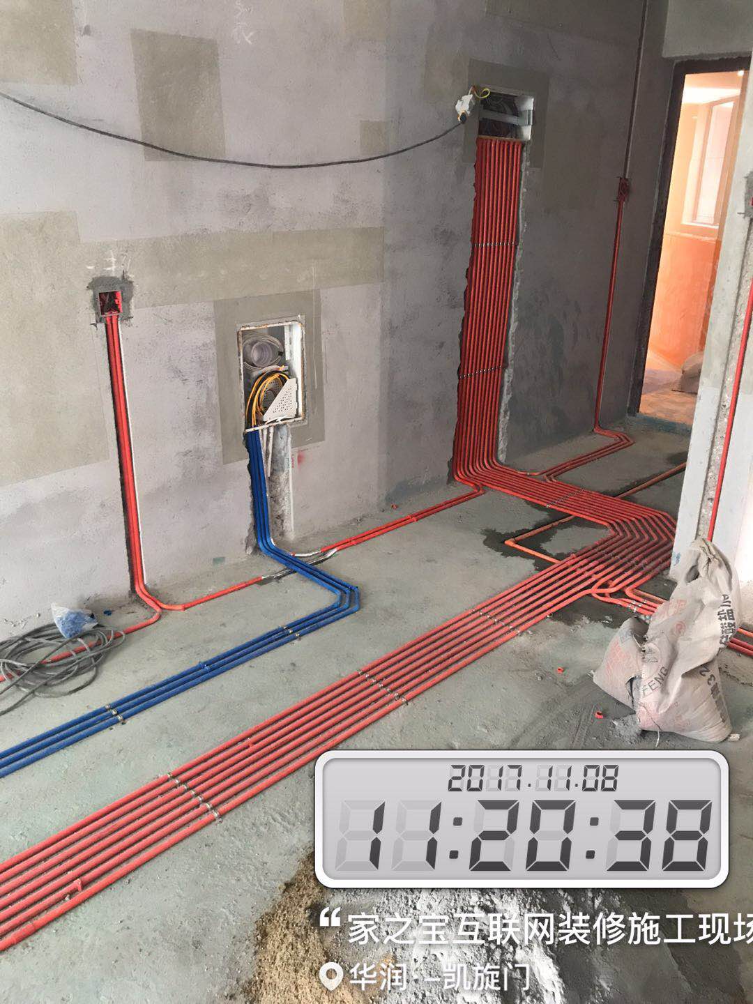 單管單槽,按國標工藝走線管水管,橫平豎直,八字拐角,采用德系歐標的水電材料